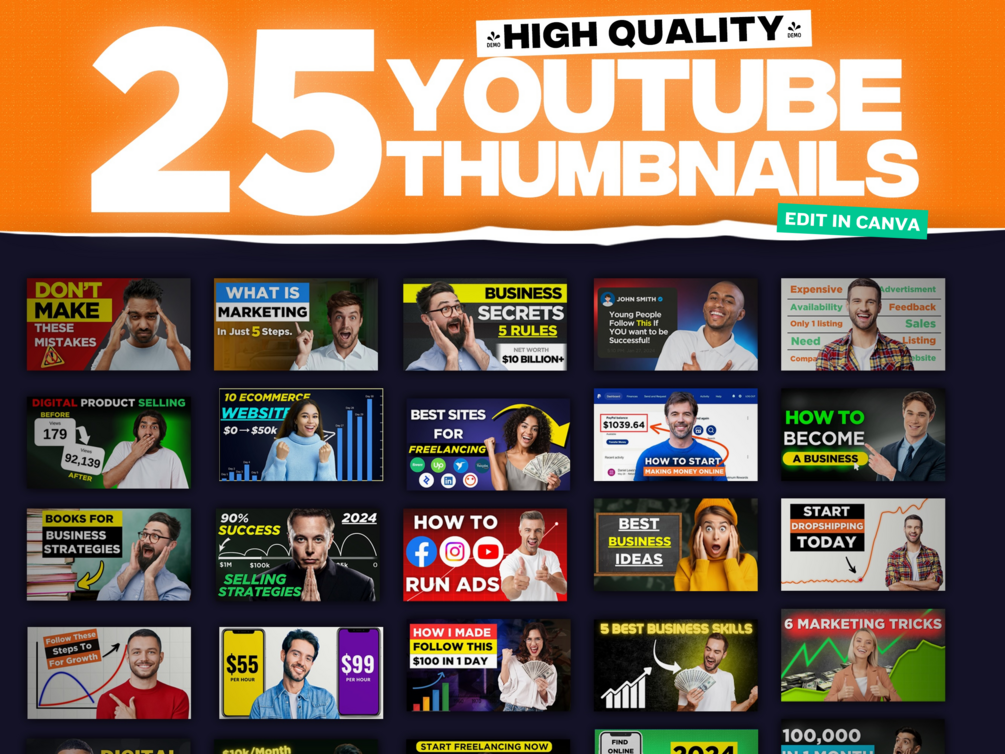 25 Premium YouTube Thumbnail Templates | Editable in Canva